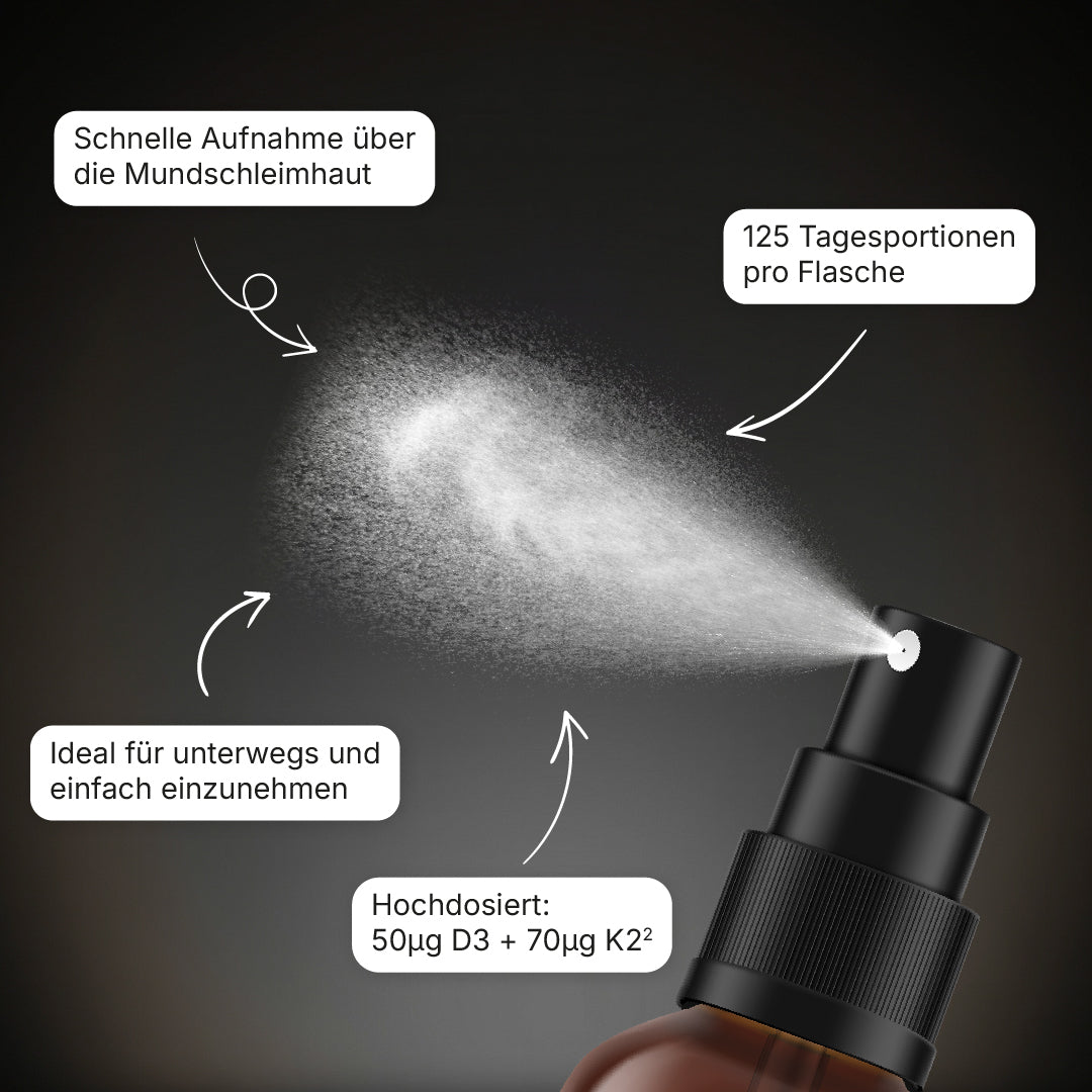 Hochdosierter Vitamin D3 + K2 Spray für Knochen, Muskeln, Immunsystem und mehr.1